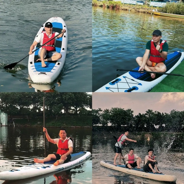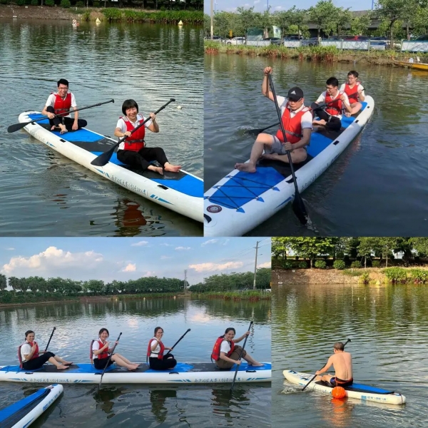 南方游桨基地的水上项目丰富多样,有桨板、龙舟、渔艇、游泳等。是夏日避暑、游玩胜地,当天同事们玩得不亦乐乎。