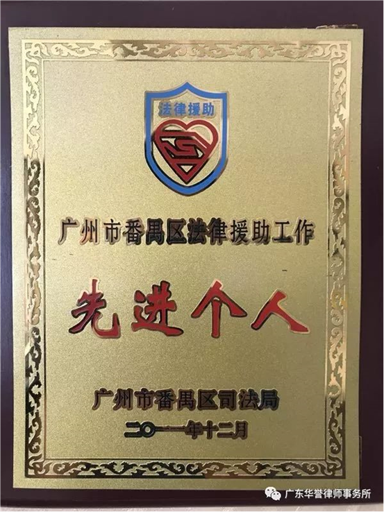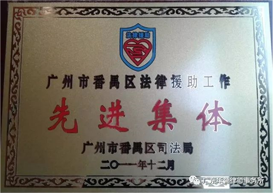 ※广东华誉律师事务所 荣获广州市番禺区司法局授予2011年度 “广州市番禺区法律援助工作先进集体” 称号
