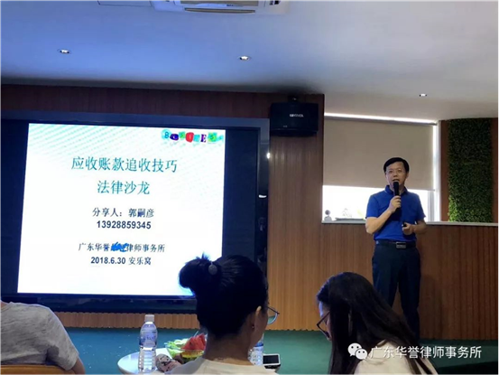 期间,郭律师通过真实案例进行分析,模拟各种可操作手法,由浅入深地向与会企业及管理层详细介绍应收账款追收的技巧。