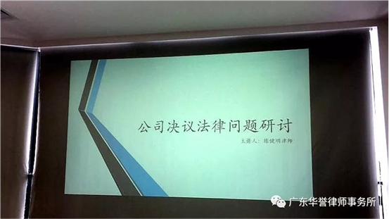 7月26日,华誉律师事务所多功能会议室内,我所陈健明律师率先吹响了7月沙龙会的 “青年号” —— 为大家带来题为《公司决议相关法律问题》的法律沙龙研讨会。