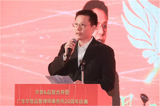 番禺区司法局局长刘玉裕先生深厚寄语,为广东华誉品智律师事务所率先实现律所的强强联合,给予了充分肯定与殷切期望。