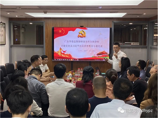 广东华誉品智律师事务所组织全体律师参加中共党史教育、习近平法治思想教育、律师行业突出问题警示教育等专题学习会议。