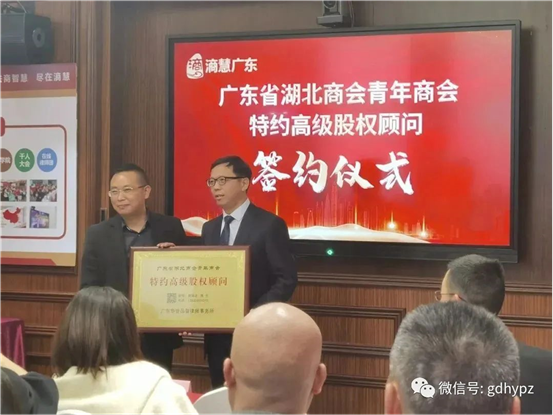 本次沙龙讲座受到在场企业负责人及主办方肯定,广东省湖北商会青年商会与郭律师现场签订特约高级股权顾问合同并授予郭律师牌匾。