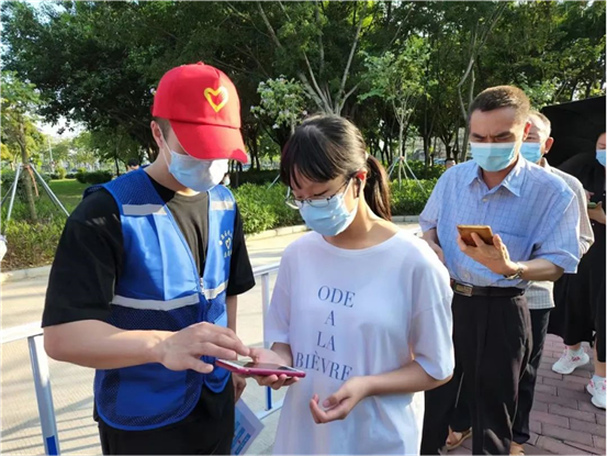 我所党员律师谷露苗以及实习律师何健盛积极响应番禺区司法局的号召,在炎热的太阳底下,任汗水湿透衣服,仍始终坚守在了疫情防控一线。他们参与了前期的准备工作,维持核酸检测队伍的秩序、引导群众扫码登记行程等志愿服务工作。