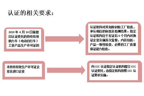 自2019年4月15日起,电动自行车未获得CCC认证的,不得出厂、销售、进口或者在其他经营活动中使用。对于生产电动自行车的企业,需要按照新标准改造升级生产线。