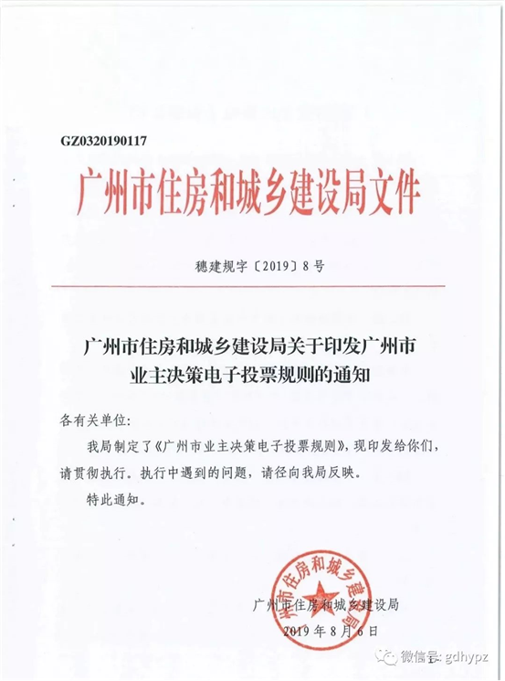 广州市住房和城乡建设局关于印发广州市业主决策电子投票规则的通知,
